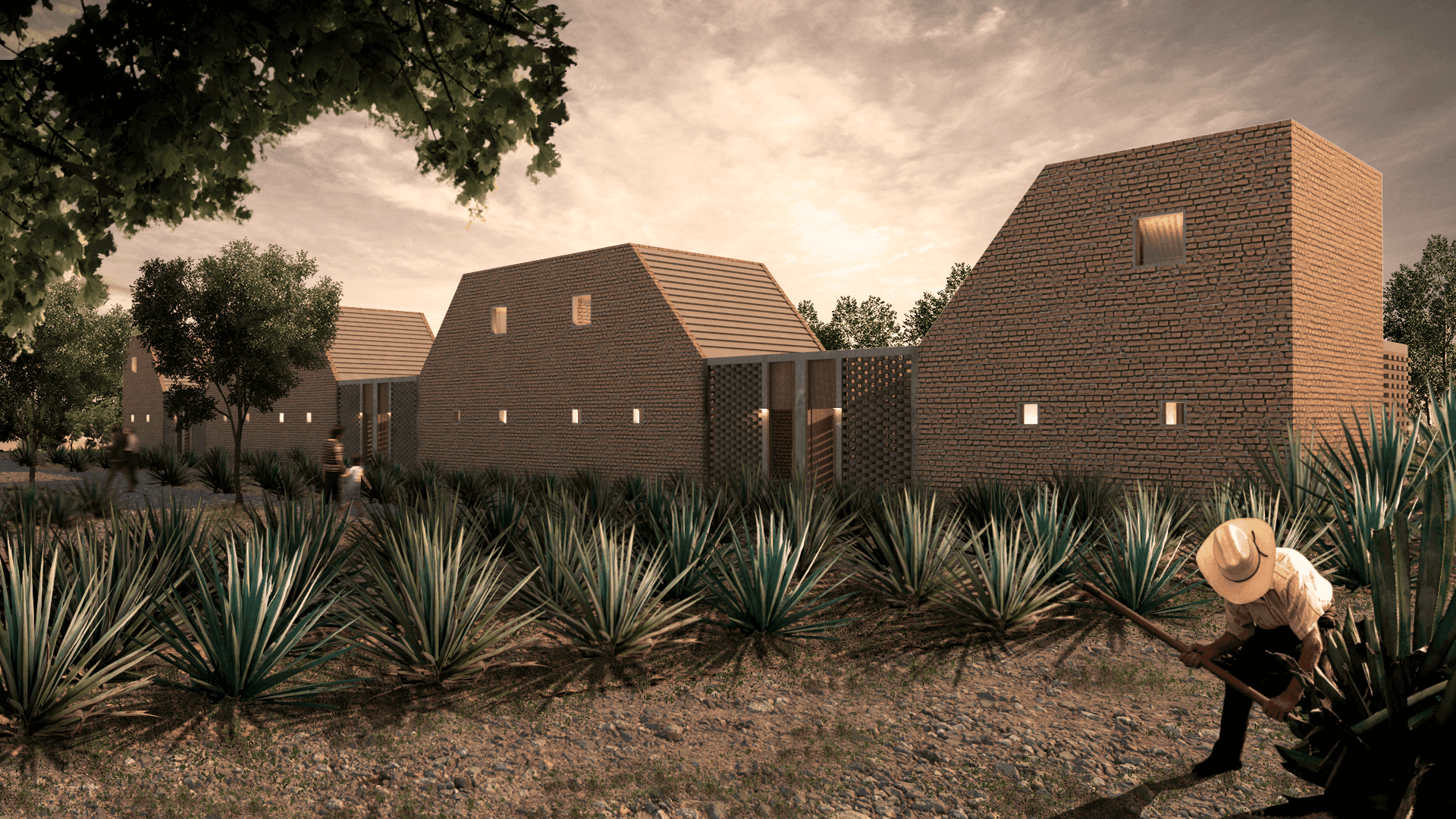 Desplantándose sobre un espacio reducido, cada unidad cumple con el programa de una habitación, un baño completo, área de estar, cocineta, tapanco y patio con terraza. El complejo de viviendas se abre camino sobre los plantíos de agave para después dividirse en tres accesos, que permiten la entrada en pares a cada una de las viviendas, primero a través de un patio independiente, y posteriormente, al interior de las mismas.